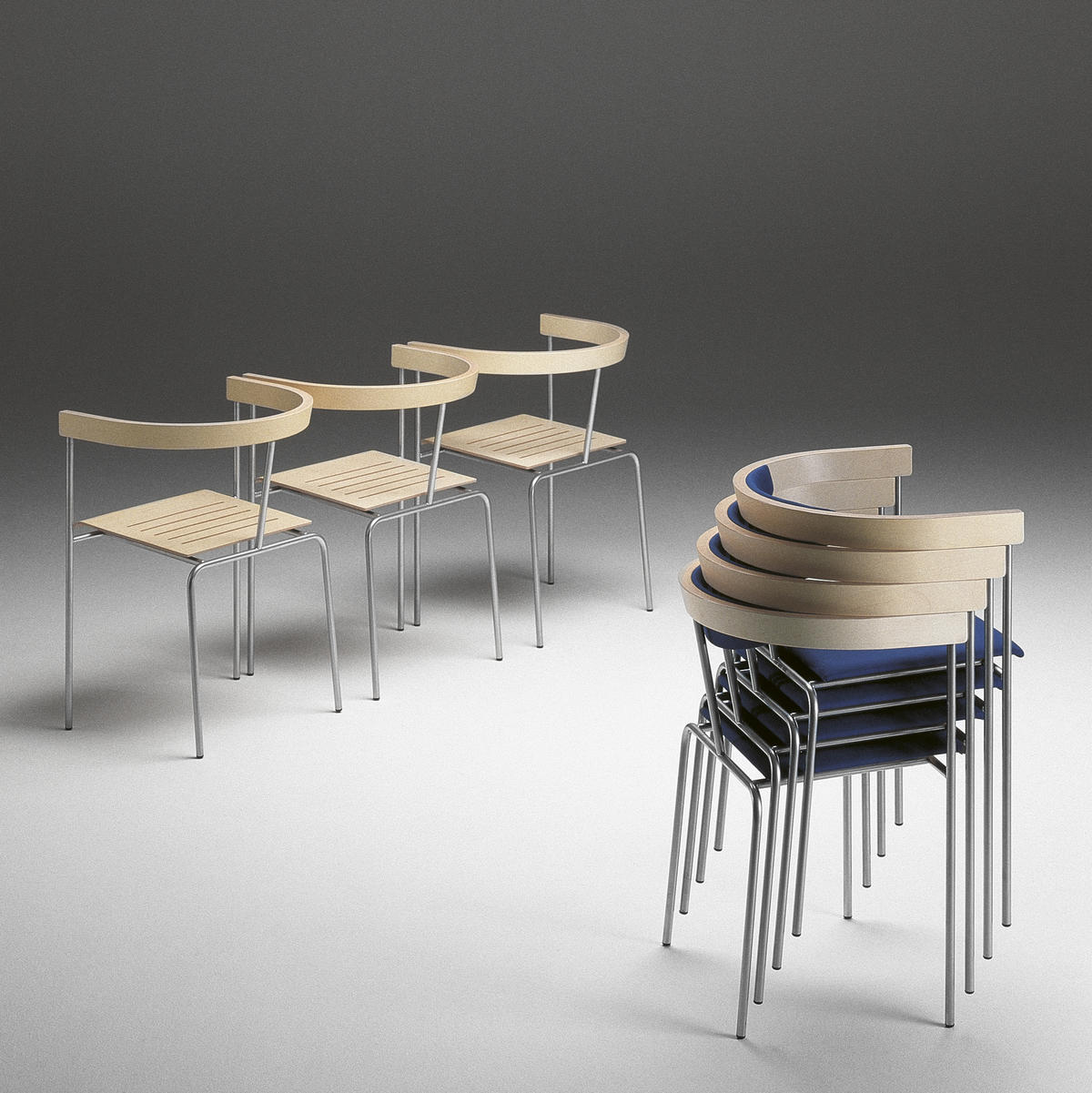 CINUS is a light armchair with a new and rethought construction, allowing it to be compactly stacked – an unusual ability for this enclosing type of chairs.
