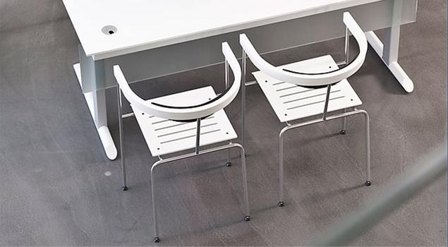 The “back-on-back-stacking” saves an upholstered seat from the usual marks.
