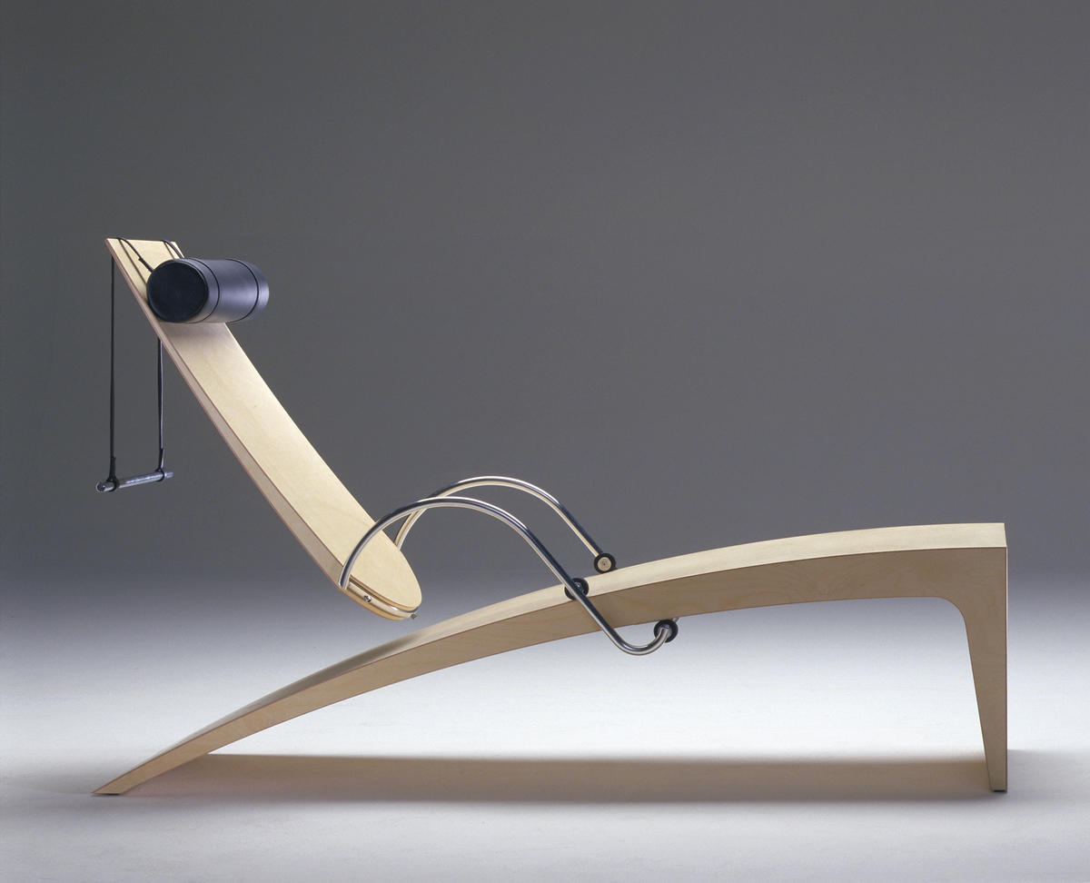 “Flying Float” combines a stable plinth with an almost flying back, which is flexible and forgiving for the sitting person. Furthermore, the construction is an experiment with using gravity to lock the back, which can be repositioned as wanted, without using tools, by just reducing the weight on the back for a moment, while sliding it to the wanted new position. A simple push-pull-system with 4 “friction-wheels” integrated in the armrest makes this possible.