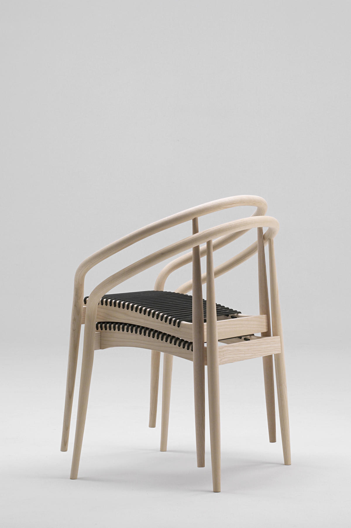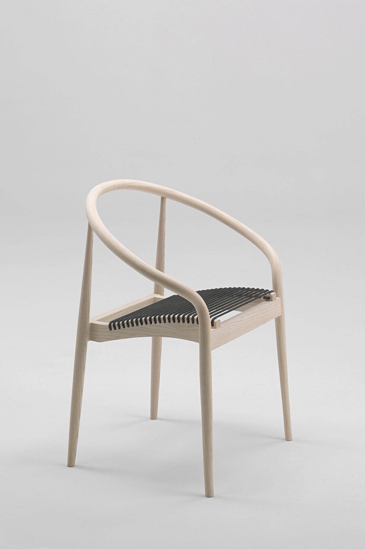 The back embraces the sitting person and the forgiving rubber-strings of the seat adds a feeling of comfort.