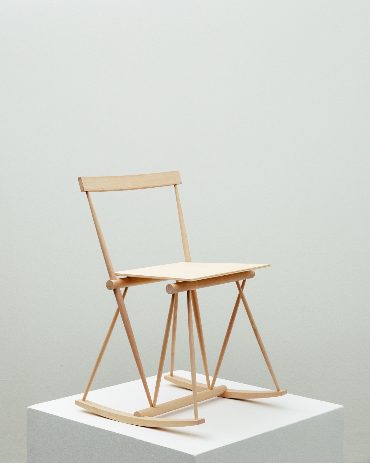 A slender grid-structure is being converted into a seating furniture. The chair is equipped with meads, partly to dispute authoritarian dogmas about not tilting the chair and partly because I believe that the possibility of tilting relieves the chair's minimal joints and increases the strength. The chair is made of chaff-beech, which, in addition to billiard cues, is most commonly used as firewood.